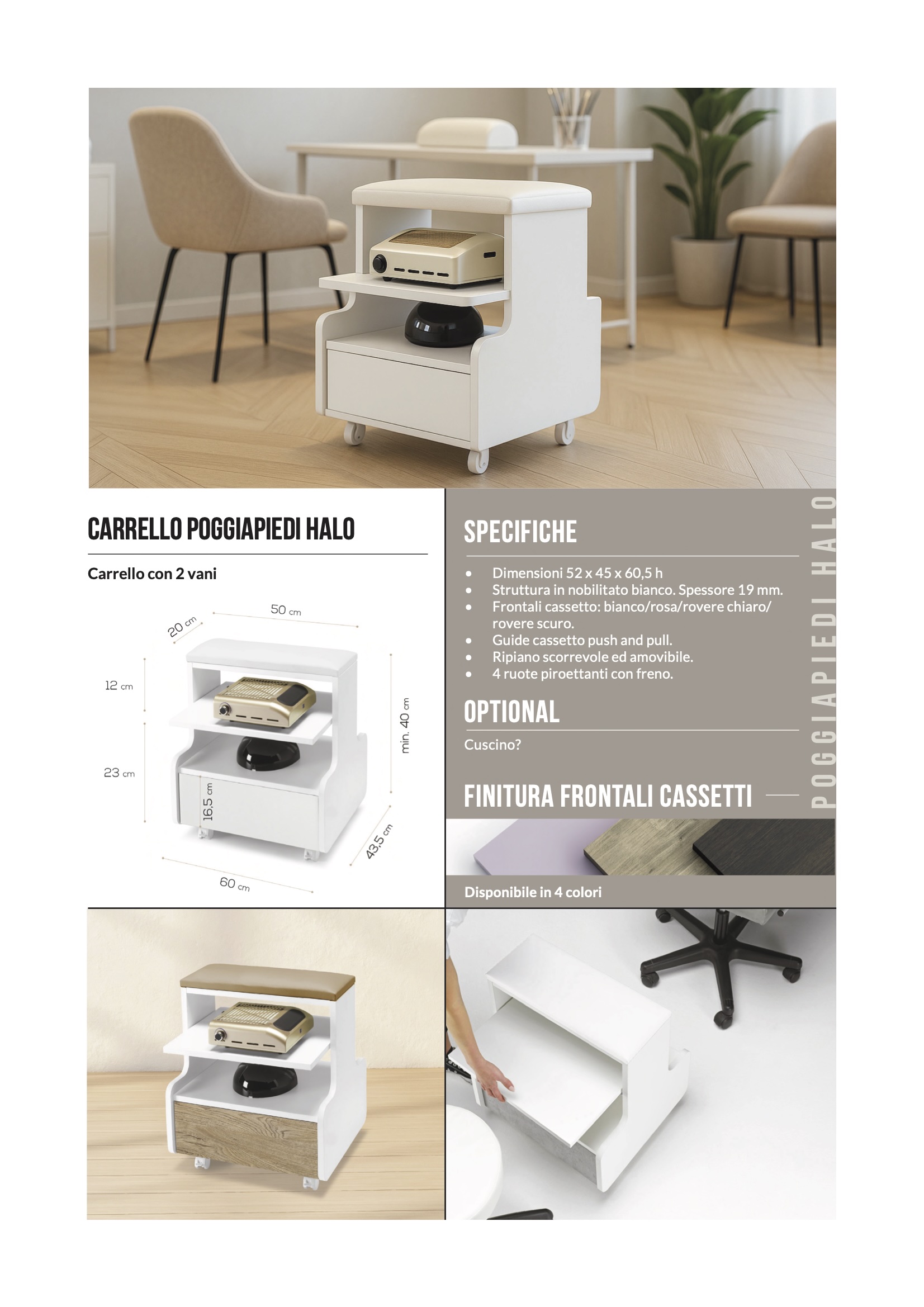 Frontali cassetto: bianco/rosa/rovere chiaro/